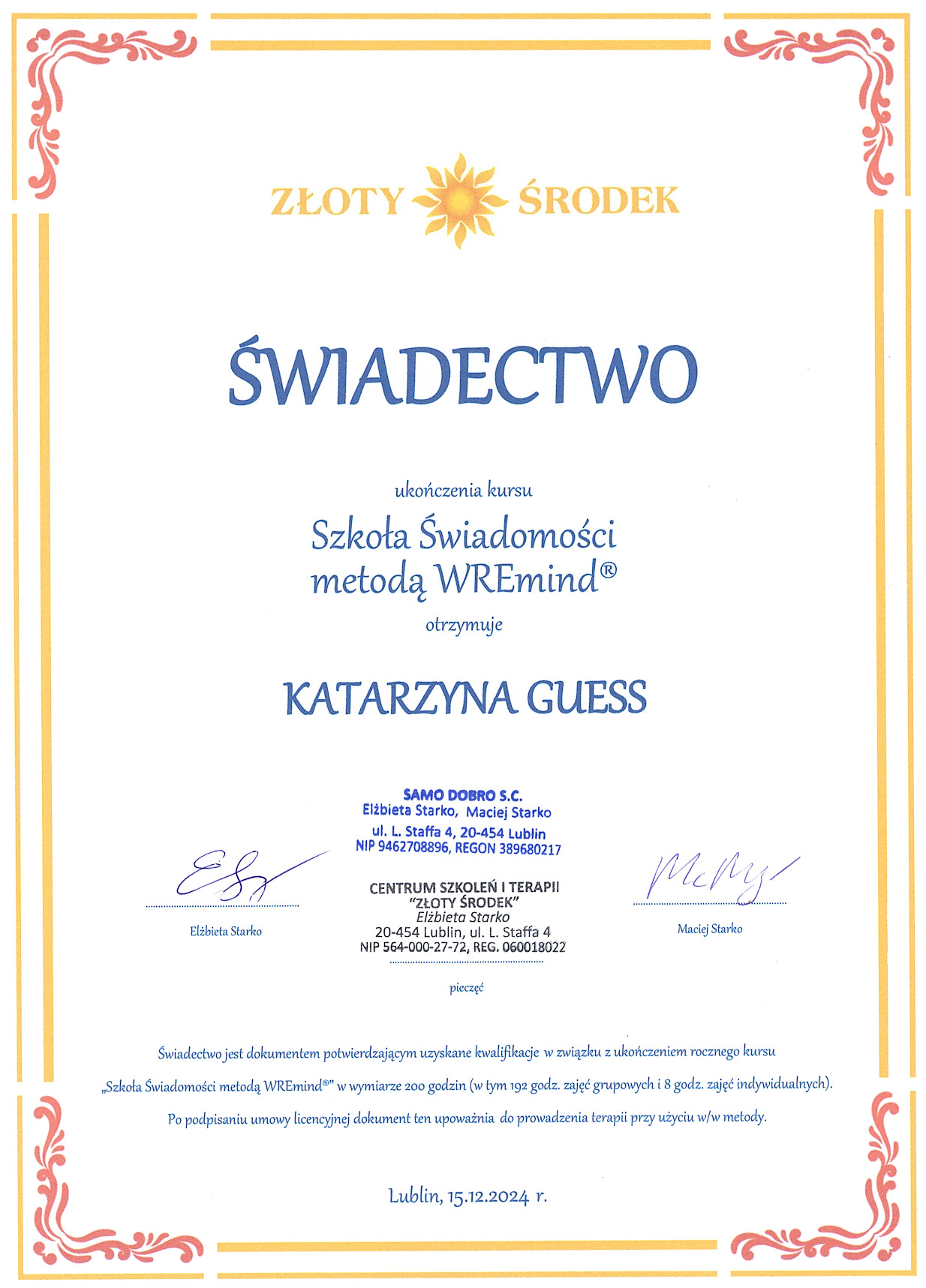 Jeśli coś w Twoim życiu nie działa tak, jakbyś chciał/chciała, może warto spojrzeć głębiej? Może to nie pech, przypadek ani wina innych, lecz zaproszenie do rozwoju? Kiedy przestajemy obwiniać los i zaczynamy brać odpowiedzialność za swoje doświadczenia, dzieje się magia. Życie przestaje być nieustanną walką, a staje się fascynującą podróżą ku wolności i spełnieniu. Możesz tę podróż odbyć ze mną. Nauczę Cię technik pozwalających zajrzeć w te prastare zapisy, by uwolnić się od ich skutków. Przeprowadzę Cię przez proces uzdrawiania karmicznego. Dzięki energii kolorów oraz uzdrawiającej mocy wahadełka masz szansę przetransformować blokady i niekorzystne schematy. Więc co wybierasz? Powtarzanie dawnych historii czy napisanie nowego rozdziału? Wybór zawsze należy do Ciebie. Pracy z energią i wcieleniami uczyłam się u najlepszych mistrzyń w Polsce: Eli Starko, Bogusi Sowińskiej, Jadwigi Nairy i Małgosi Zalewskiej Zapraszam na sesje indywidualne.